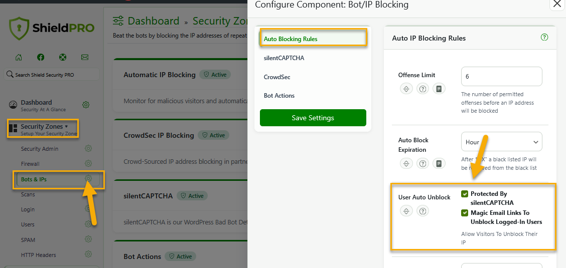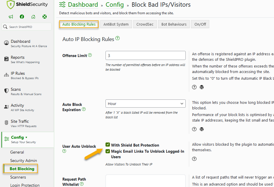 How to allow visitors/logged-in users to automatically unblock themselves from Shield