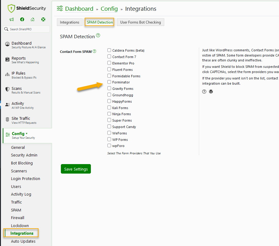 All you need to do is to select the contact form provider you want to be checked for SPAM.