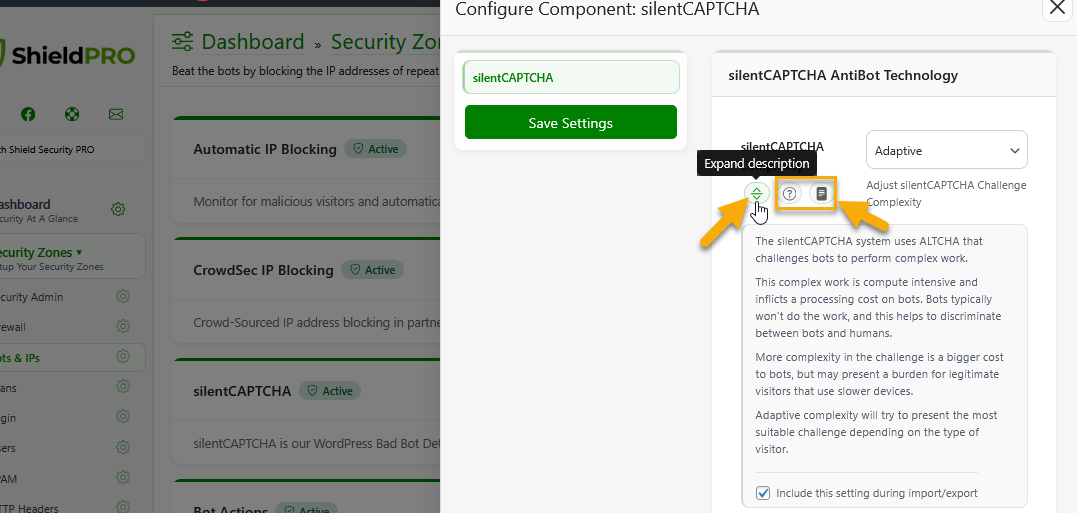 - Go to Shield Security > Security Zones > Bots & IPs zone.