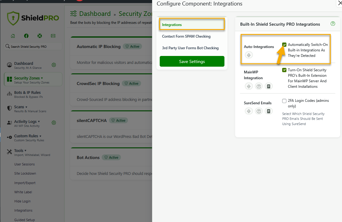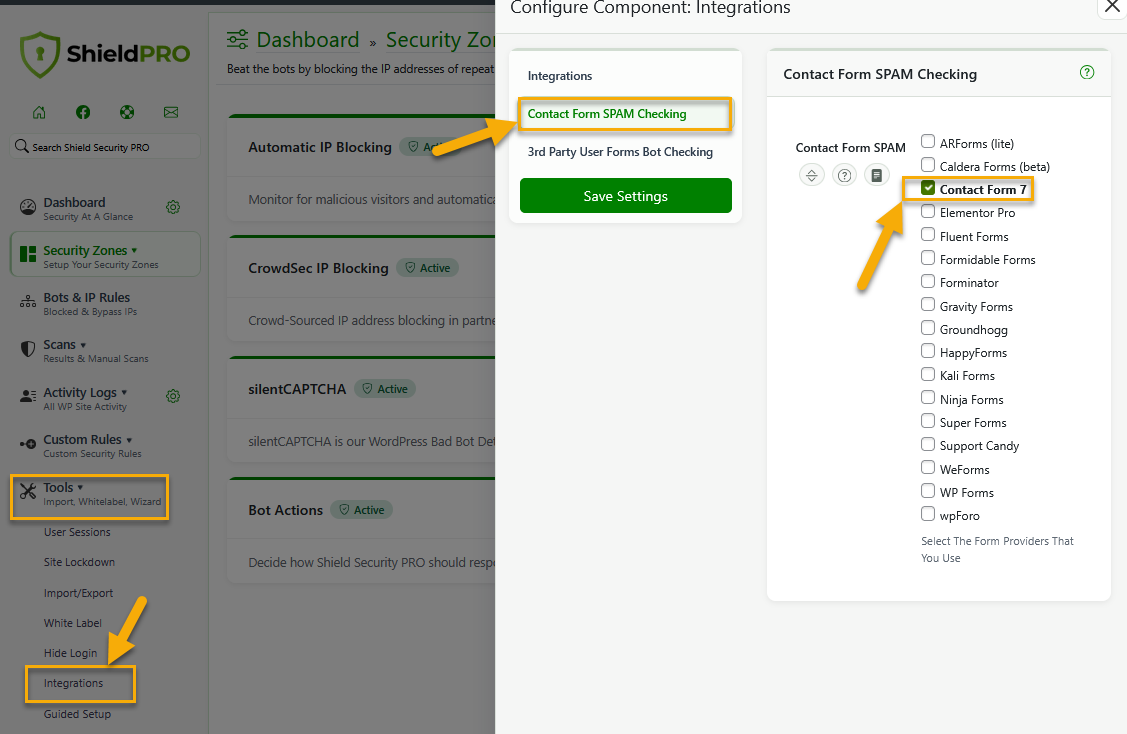 Once silentCAPTCHA is configured, you need to tell Shield which contact form plugin you use. Shield will then use silentCAPTCHA to check submissions coming from that plugin.