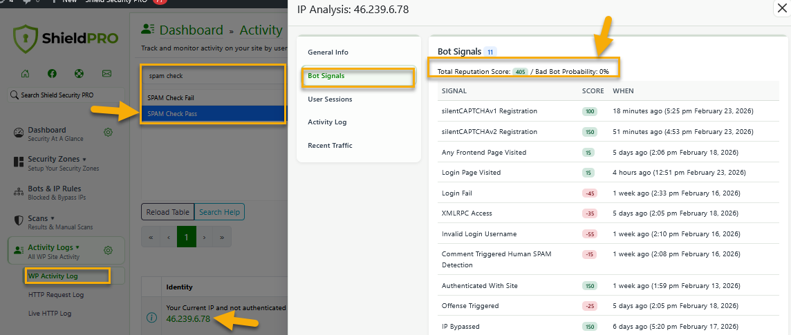 When you see a Spam check pass event, that almost always means the submission came from a real visitor. This shows that Shield is allowing legitimate visitors through while still blocking bad bots in the background.
