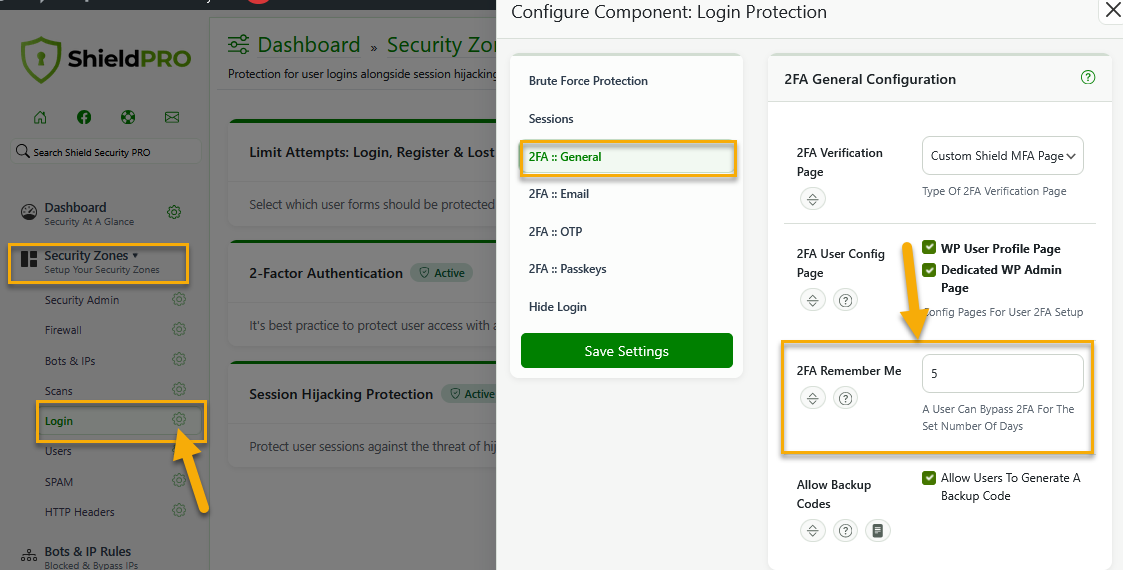 Now, with Shield Security, you can make it easier by using the "Remember Me" option. You still get prompted for your 2FA codes, but not every single time.