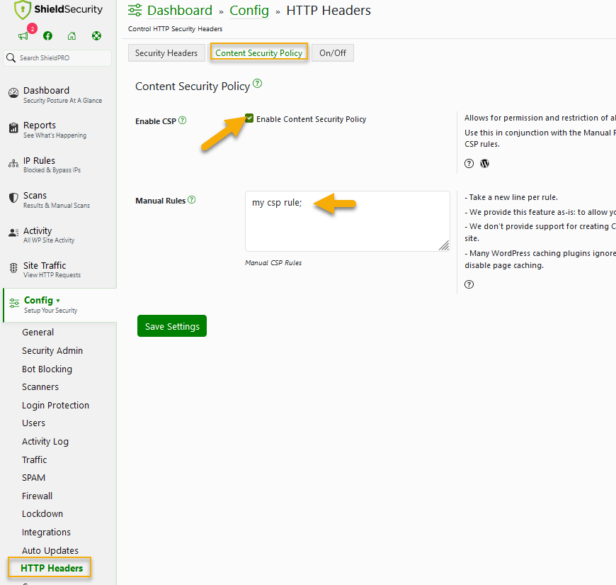 To secure your site with CSP header in Shield, you'll need to manually add custom CSP rules to your site.