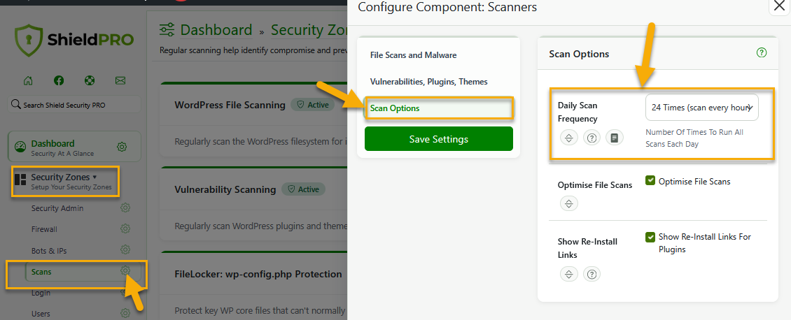 When enabled, the all scanners run automatically each night and together they ensure that your WordPress Core is in mint condition.