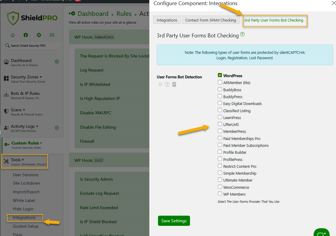Under the main Tools menu > Integrations > you can select your 3rd party providers to have Shield automatically detect Bot requests to these forms: