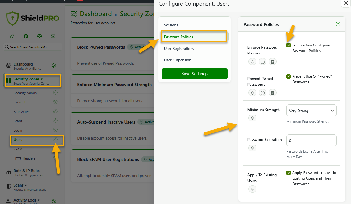 Note: ShieldPRO is required for the all options except ‘Pwned Passwords’. To find out what the extra ShieldPRO features are and how to purchase, please follow this link here.
