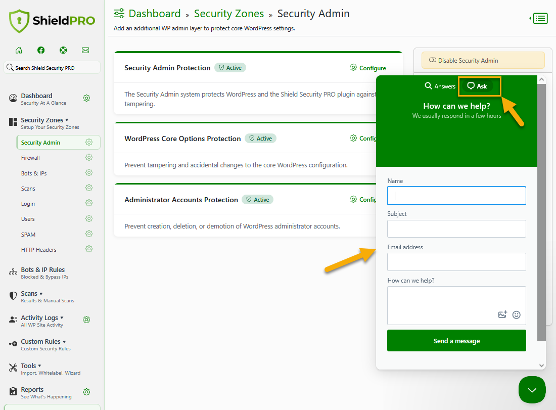 We are eager to assist you. So, if you need help getting started, find a bug, or have trouble using our ShieldPRO plugin, get in touch so we can help.