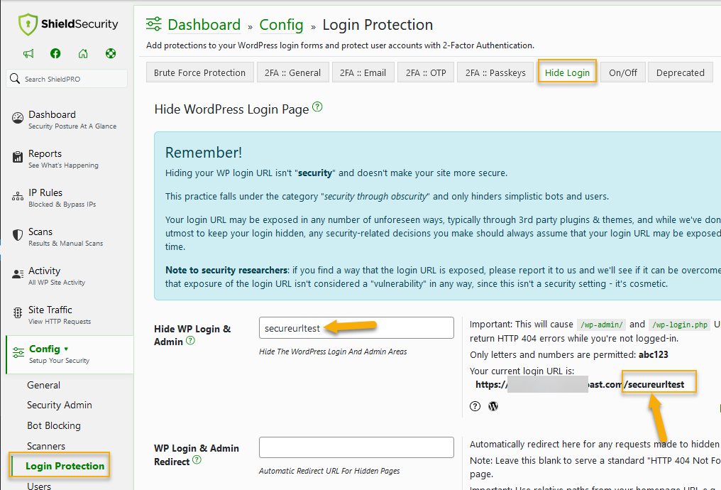 Remember: The only way to access your WordPress login page is through the new URL you have created.