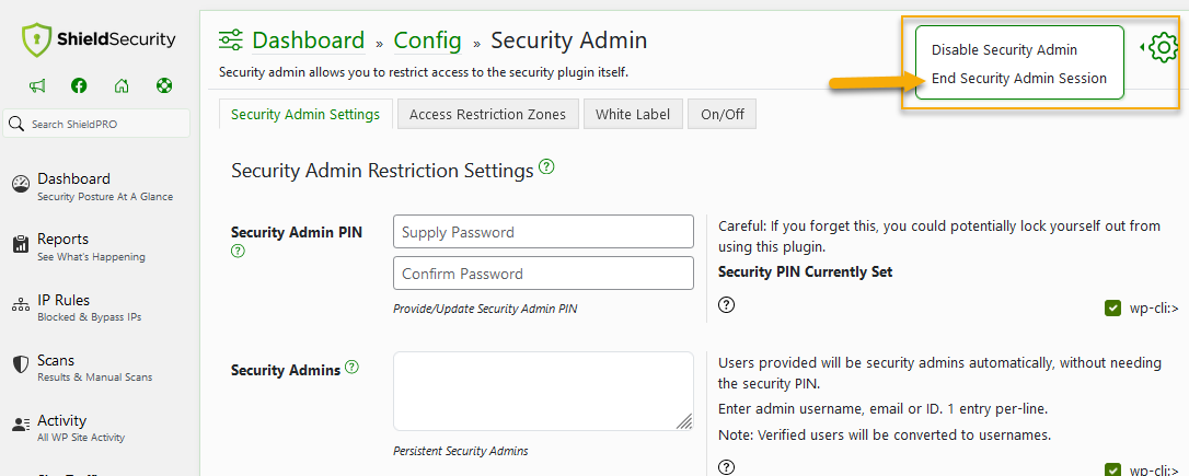 How to end Security Admin session