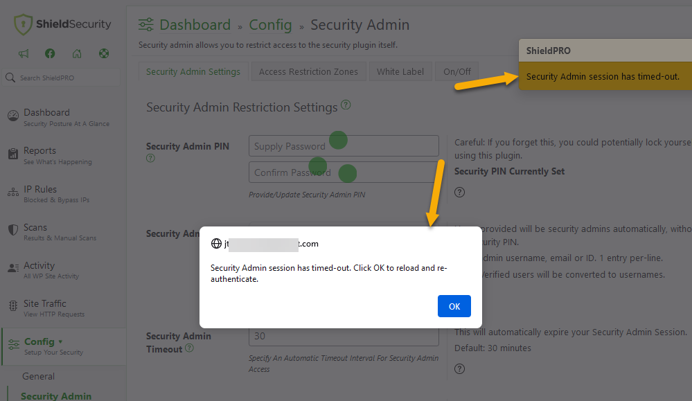 Once the Security Admin session has nearly timed-out, you'll be notified: