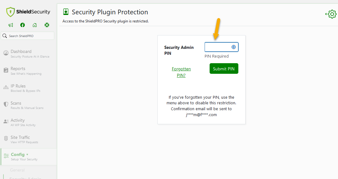 Any further access to the plugin admin will prompt you to enter your security PIN.