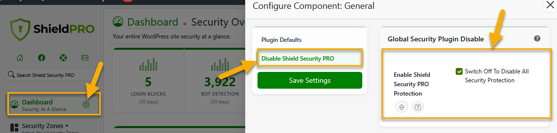 Here you can completely enable or disable Shield plugin and all its features. (see the screenshot below)