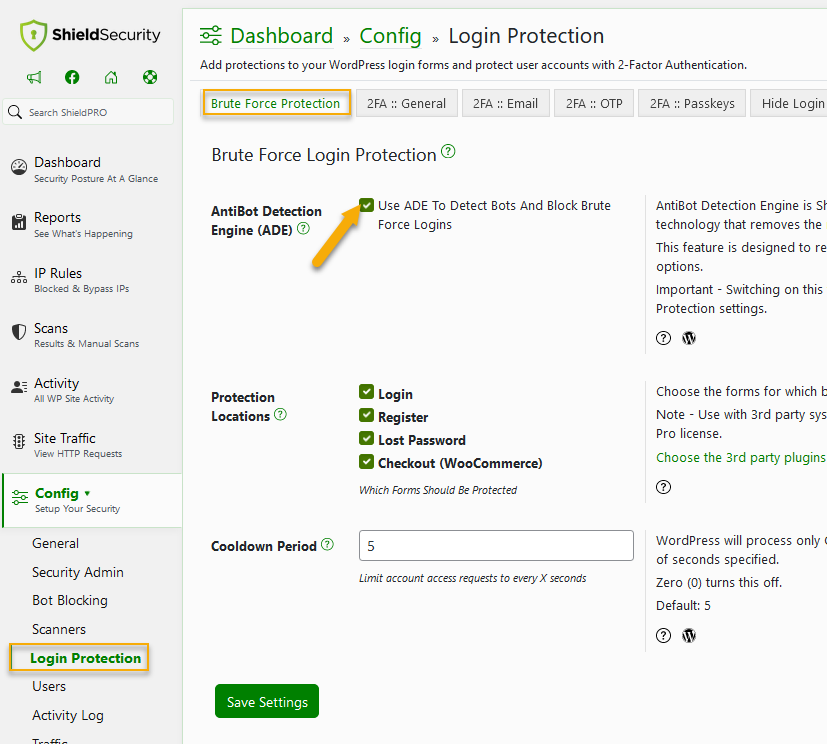You can enable ADE under the main Config menu > Login Protection > Brute Force Protection: