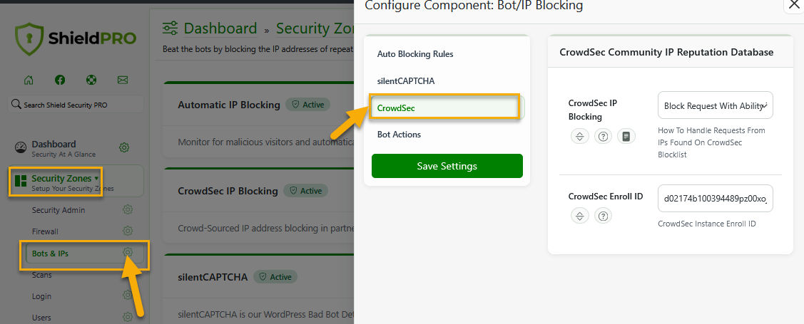 Note: ShieldPRO is required for CrowdSec integration. To find out what the extra ShieldPRO features are and how to purchase, please follow this link here.