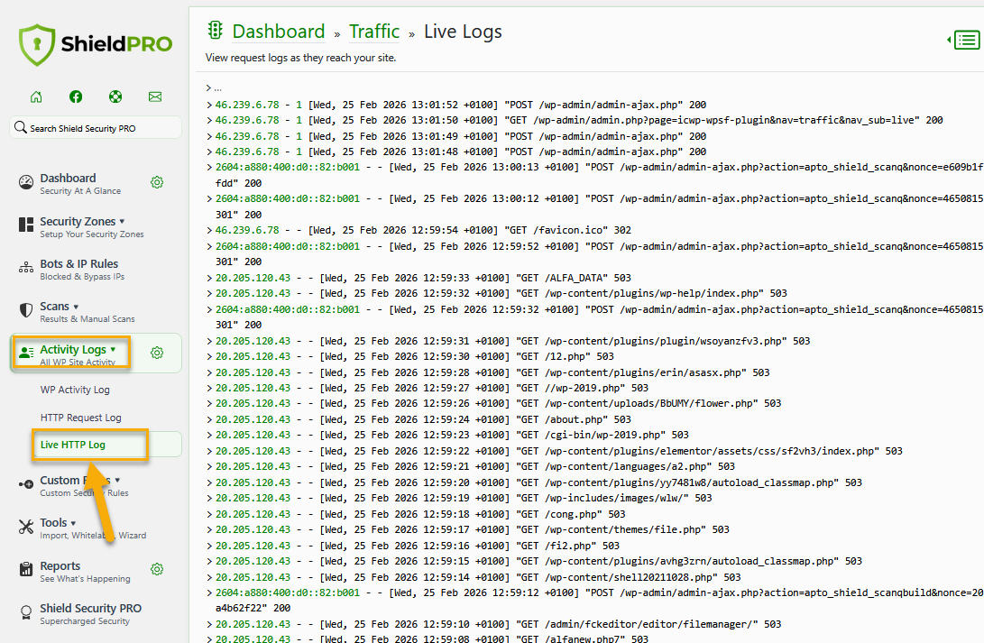 Live Traffic feature is designed to provide real-time visibility into all incoming traffic to your WordPress site by temporarily logging all requests, without any exclusions. This feature can be useful for monitoring site activity, debugging issues, or gaining insights into user behavior.