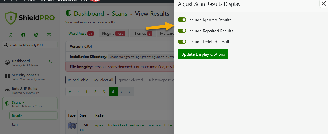 But, you can un-hide these results for the WP core, plugin, theme and malware files.