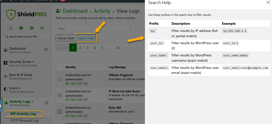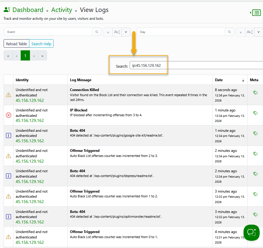 We added powerful new search capabilities for Activity Log and Traffic Log tables, including free-text search, plus filters by IP address, username, email, user ID, event description, and metadata values.