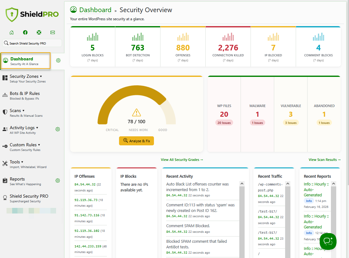 ShieldPRO 21.2 is our major release. It introduces many improvements, such as new search and faster capabilities for Activity Log and Traffic Log tables, improved security reports, added translation into nearly 40 languages and much more.